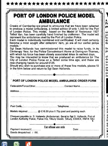 The P.L.A. Police today run the very last ambulance service to be named by British Police Officers and Sergeant Sean Hollands has commissioned this model to raise funds for the Save the Children Fund.