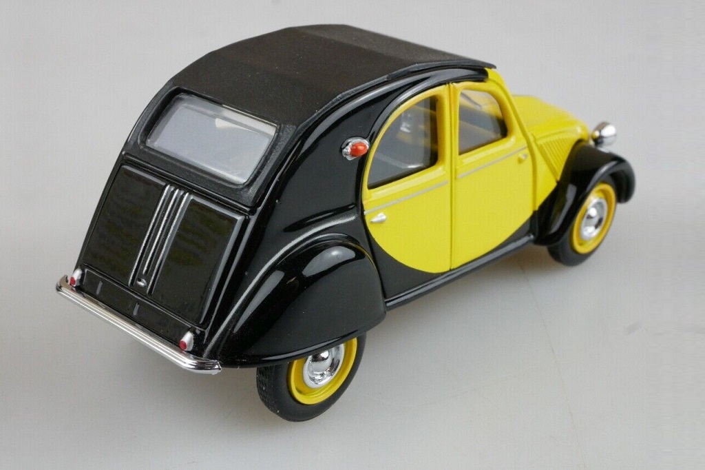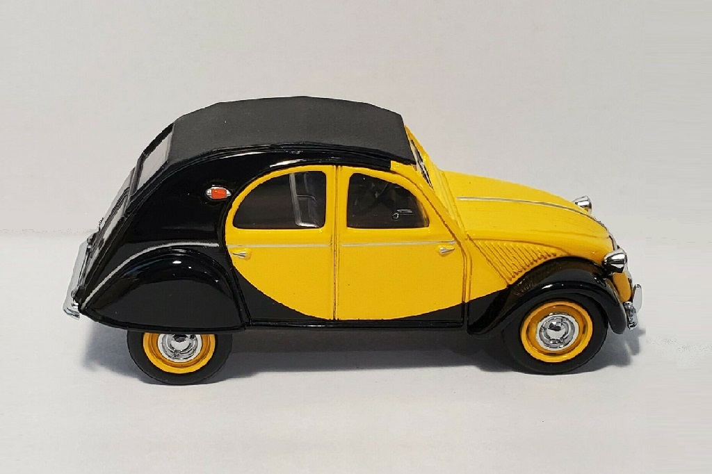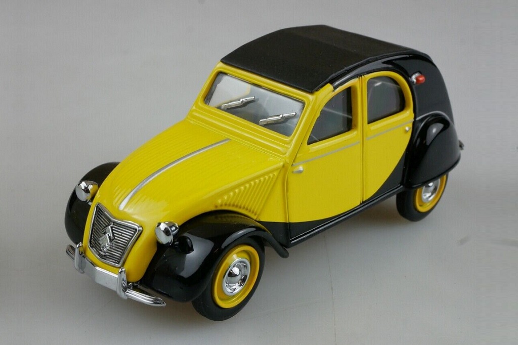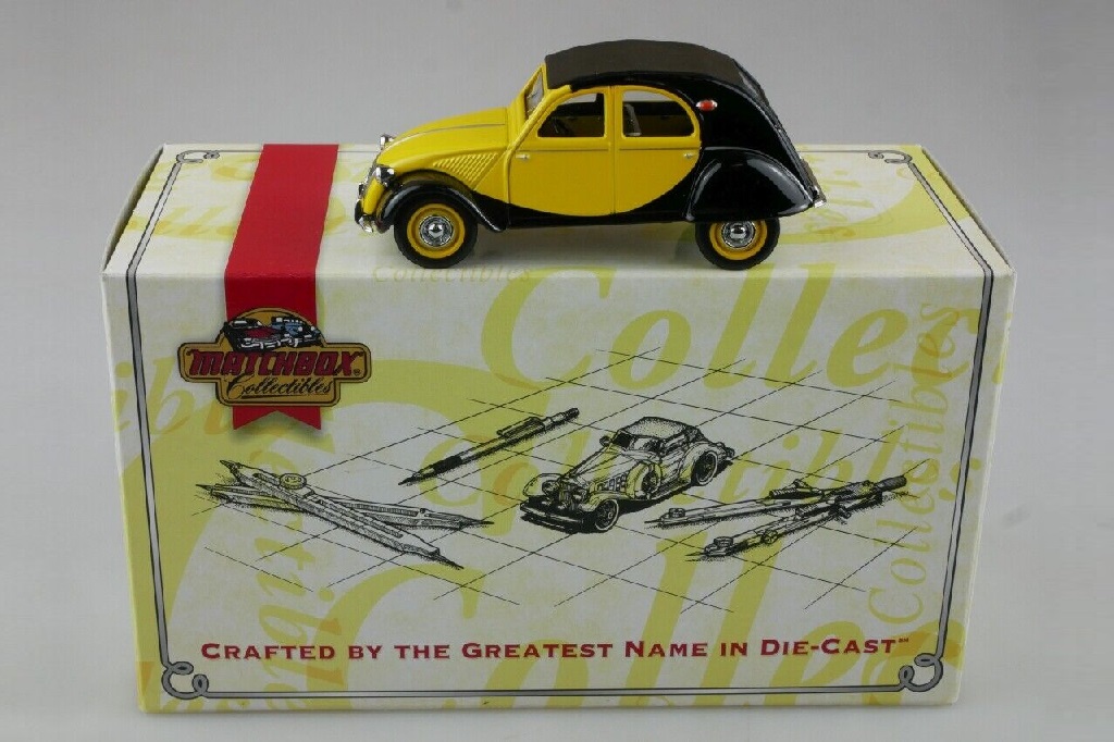 In 1948, Citroën introduced a new model that was deliberately designed for rugged use on European roads-the 2CV. While many considered this automobile to be downright ugly, it was hugely successful and continued in production as far as the 1970s. Ultimately, over five million Citroën 2CVs would be sold. At first, the Citroën 2CV was equipped with a 375-cc, air cooled, horizontally-operated, two-cylinder engine. In the mid-1950s, however, a larger engine was made available. With displacement upped to 425 cc (25.9 cubic inches) and horsepower increased proportionally, the new 2CV maintained its rugged durability - and gawky looks - but now provided a significant increase in performance. Now, the uniquely styled, legendary Citroën 2CV is recreated in a classic die-cast replica. The 1957 Citroën 2CV is precission-engineered and meticulously and authentically detailed. It is produced by - and available only from - Matchbox Collectibles.