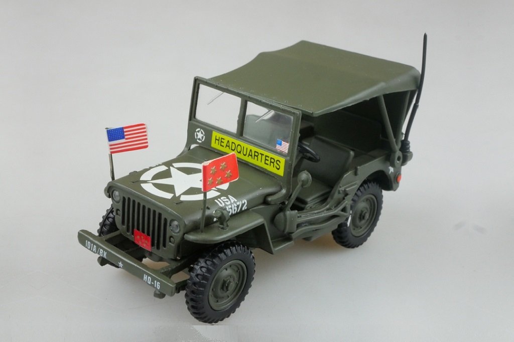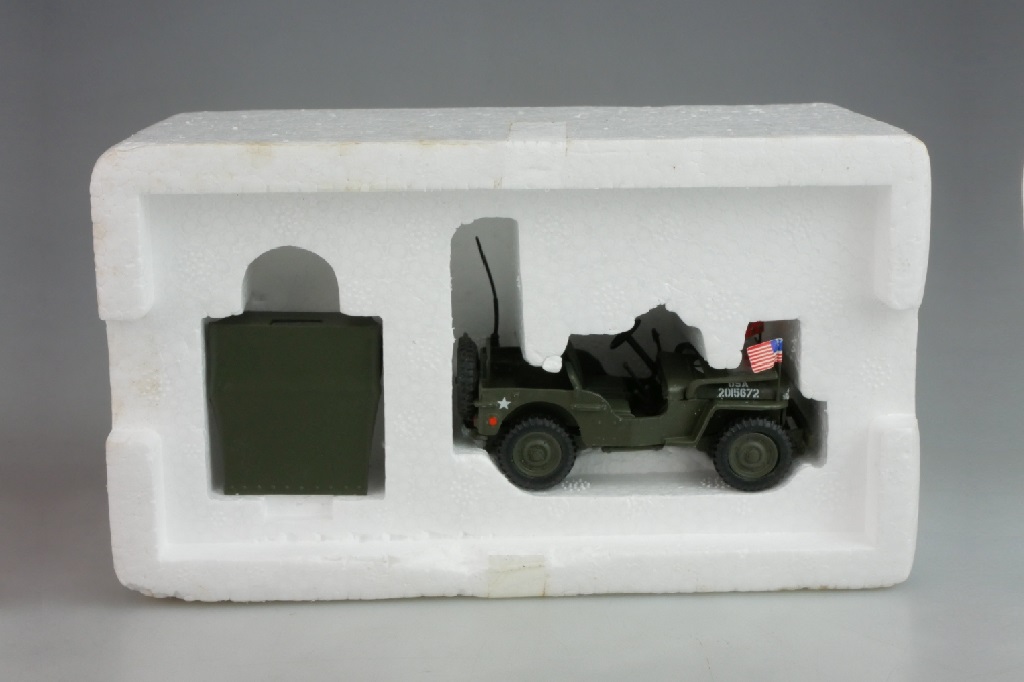 Perhaps more than any other vehicle, the military jeep is the most familiar vehicle in modern warfare. It has gained notoriety not only while serving in the armed forces, but also by appearing in many Hollywood war movies and television shows. And, even when we played with toy soldiers as a child, the military jeep was an integral part of our image of the modern army. For many Americans, the pictures of American jeeps are still embedded in our memories - whether riding into Paris after the liberation of the city or entering a town full of smiling GI's on leave or darting off with important messages to and from headquarters. Many GI's regarded their jeeps with much affection. In January of 1939, the U.S. Army placed an order for 64 Mamon-Herrington Ford 4x4s which would later be considered the granddady of the modern Jeep. As the war progressed, the Army encouraged auto manufacturers to deliver a variety of designs for four-wheel drive vehicles until ultimately a vehicle was chosen that would play such an important role in the war. An interesting aspect of the jeep is the origin of its name. One story states that test vehicles were marked with the letters GP which an American nicknamed "jeep." Another states that the name originated from a strange, dog-like animal that accompanied the cartoon character Popeye. And while today the word Jeep is trademarked by American Motors, the military jeep still carries a battalion of memories and images for many old enough to remember. Now, the Military Jeep 4X4 is recreated in an extraordinary die-cast 1:43 scale model and is produced by Matchbox Collectibles, "the greatest name in die-cast."