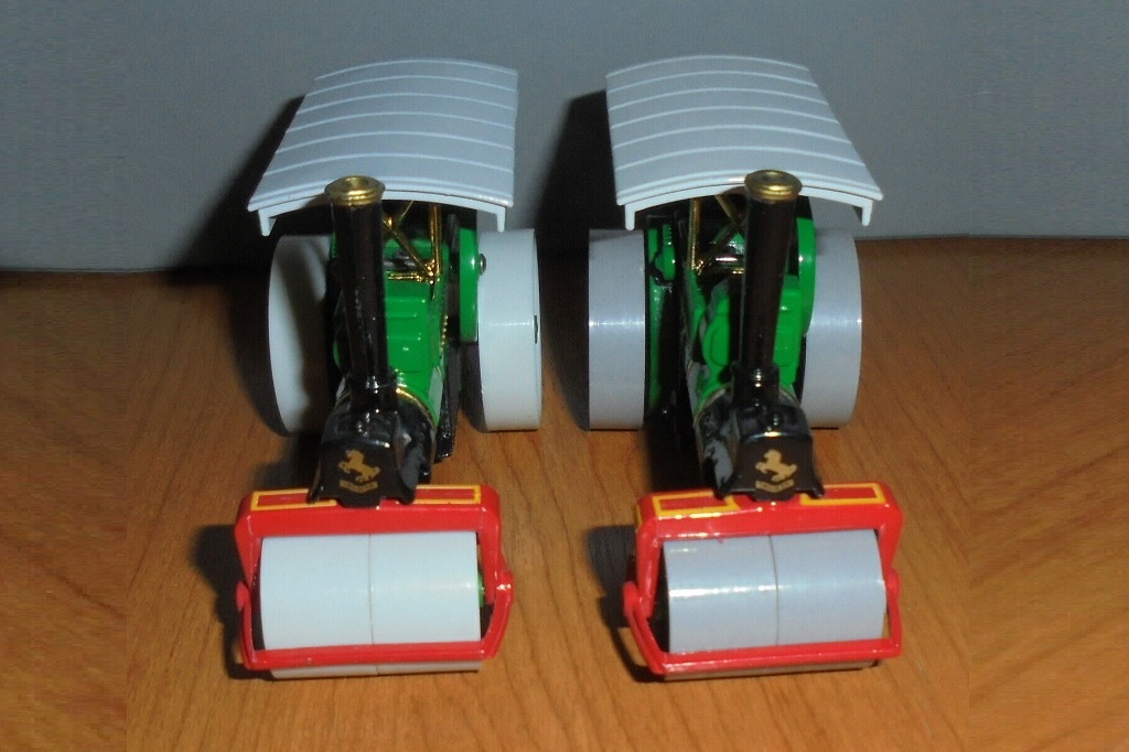 The little known Aveling & Porter with white tread to the rollers is also quite a rare piece that was made very early as it is also missing the inscription from the inside of the roof